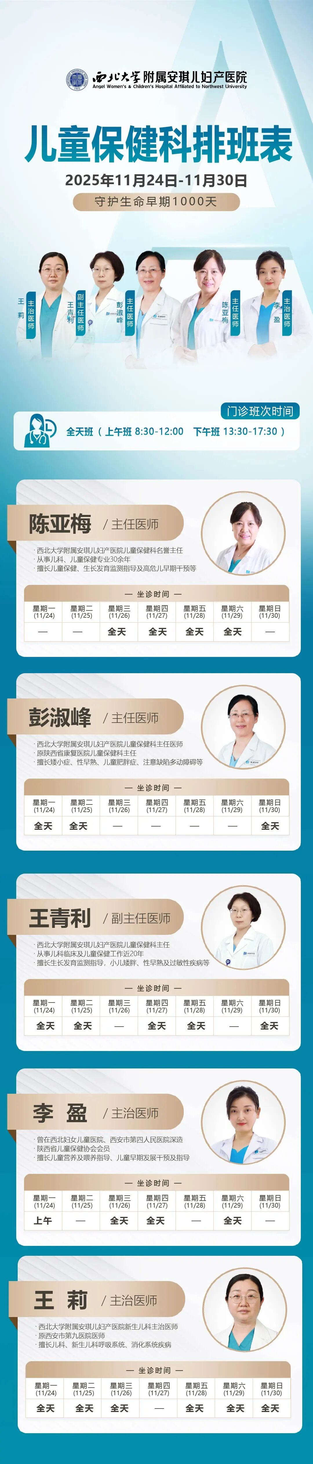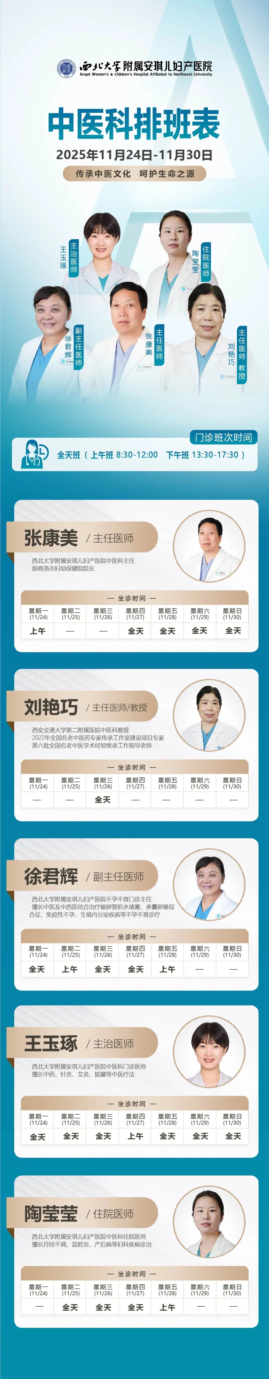 西安安琪儿妇产医院(11月17日至11月23日)专家坐诊时间表