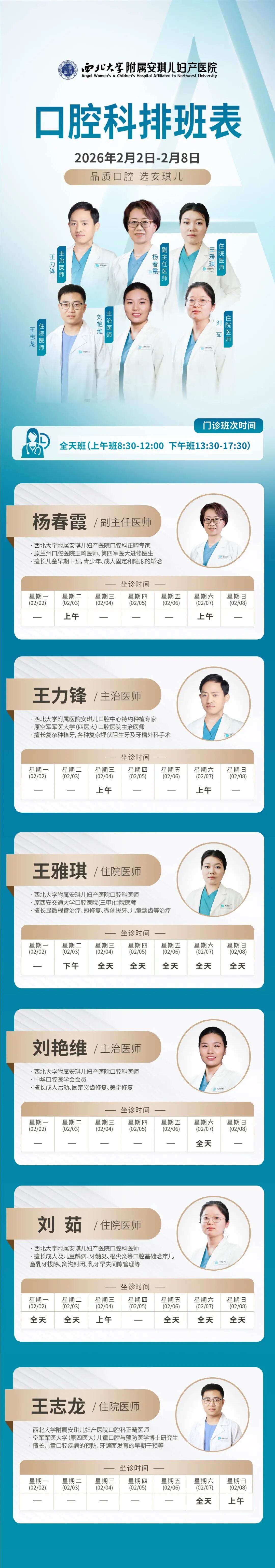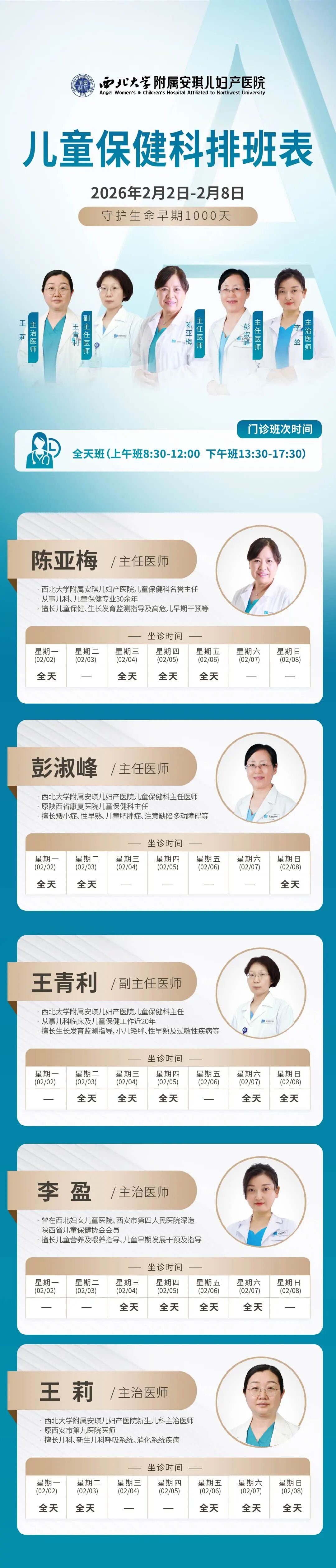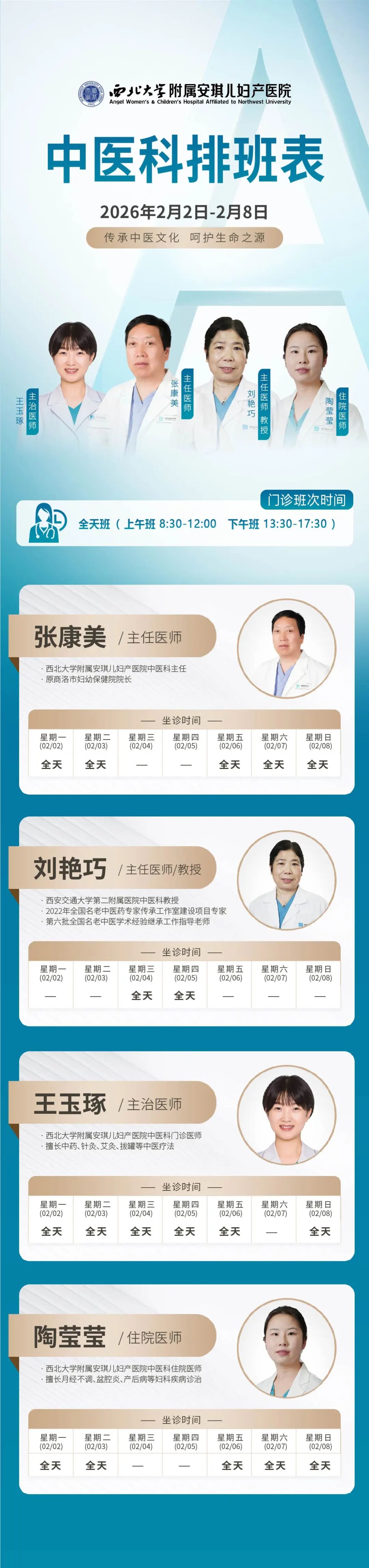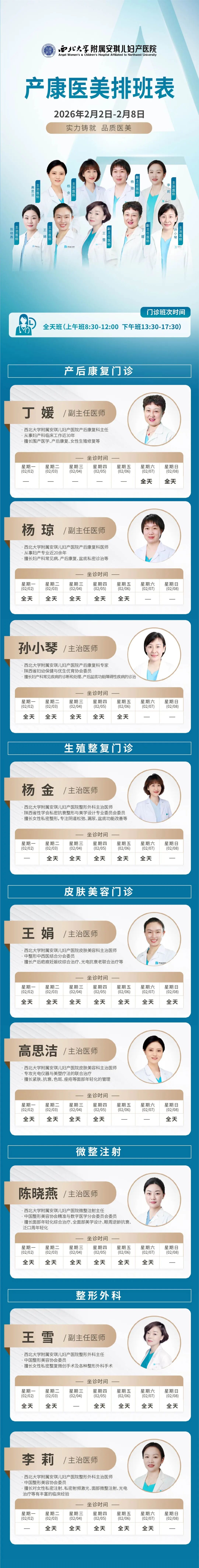 西安安琪儿妇产医院(2月2日至2月8日)专家坐诊时间表